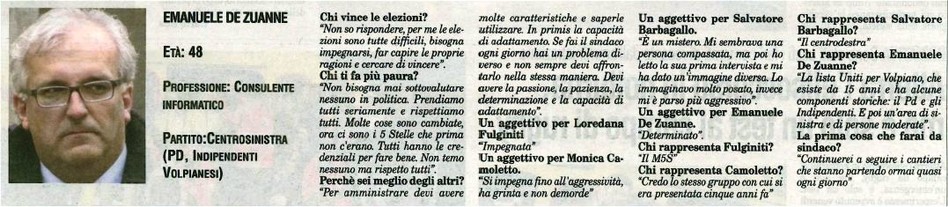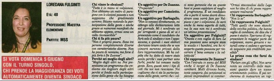 Interviste per conoscere i candidati sindaco fatta dal giornale "La Voce" sull'edizione del 05/04/2016